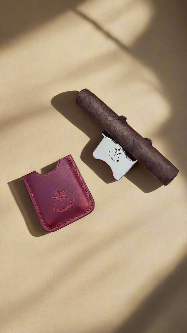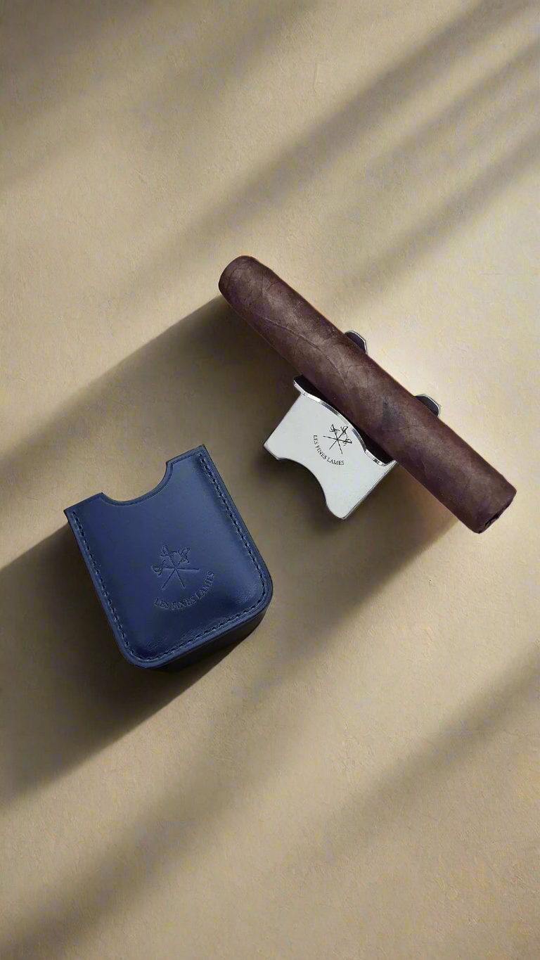 The Le petit cigar holder is made in France from 316L chrome plated stainless steel with a leather carrying case, available in four colours, that slips into any pocket unnoticed.
